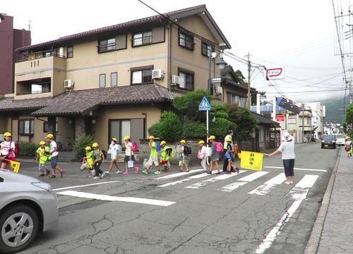 看这些结伴而行的日本小朋友没有家长的陪同,他们自己都知道应该走马路边,有的书包上还标示了走人行道。
