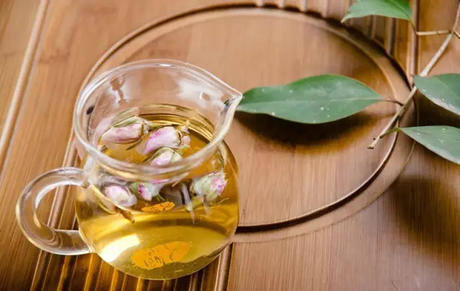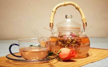 玫瑰和普洱一起冲泡,气味芳香宜人,有很好的舒解胸闷,活血散瘀功效,适宜于肝火旺,易怒人群饮用。