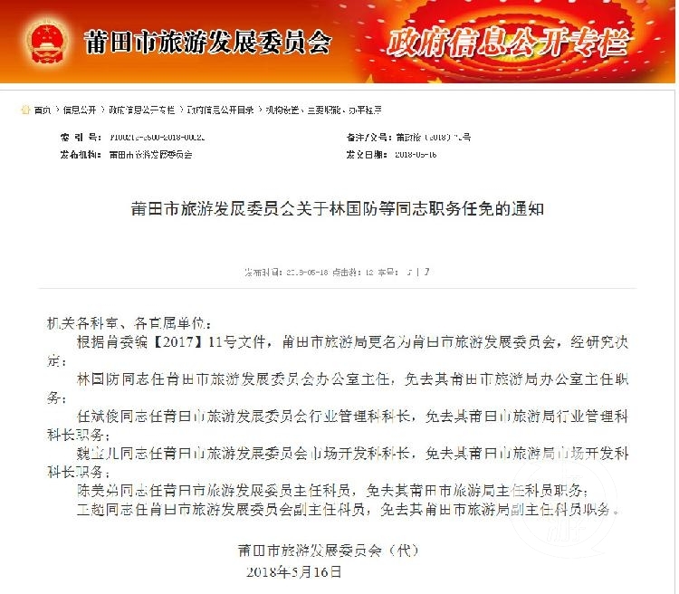 莆田市旅发委5月16日的任命文件,王超为副主任科员。