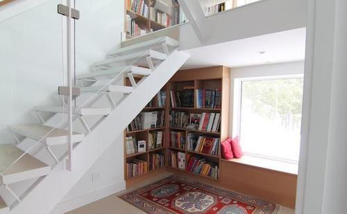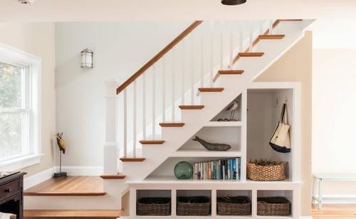 利用楼梯下未使用的空间,打造一些有创意的收纳空间。