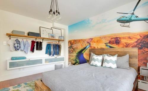 放弃传统衣架形式,牆上的衣架替空间带来些许时尚氛围。