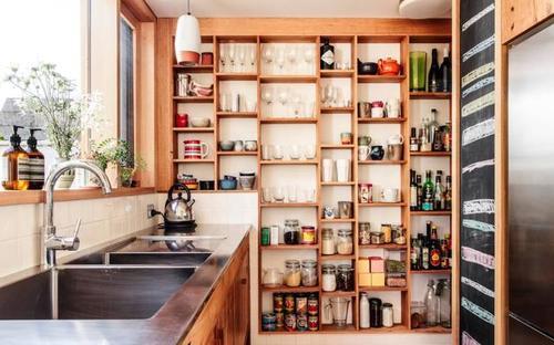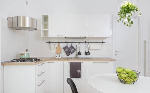 将厨房五金纳入设计之中,作为流理台墙面上的收纳功能之一