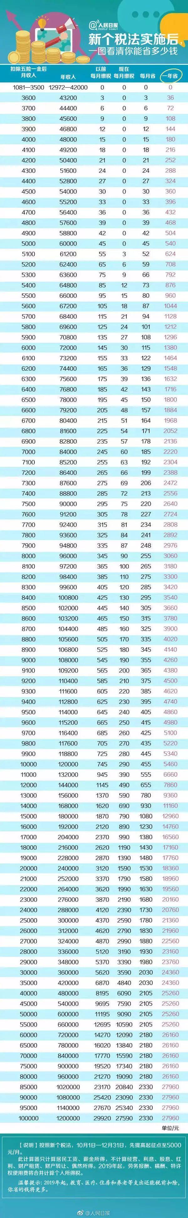 按照新个税法,快来看看一年你能省多少钱。