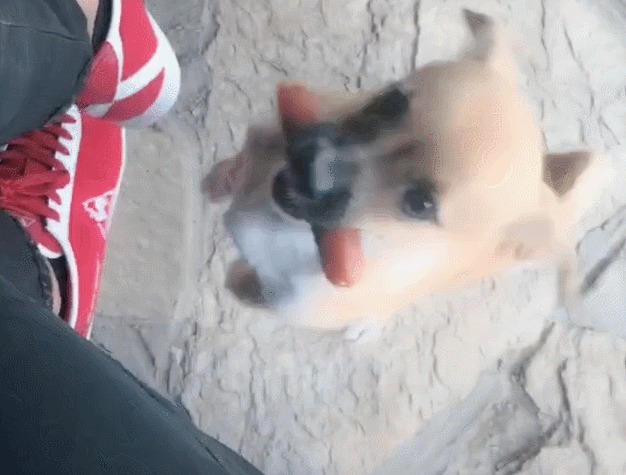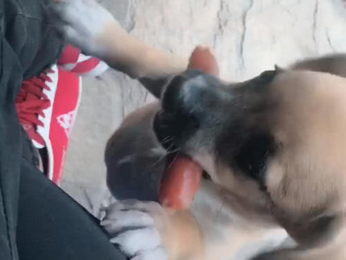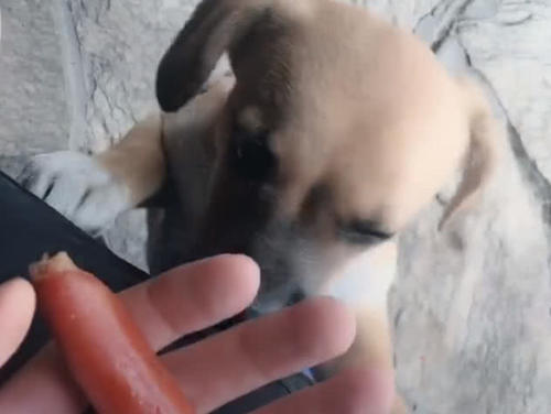 今天小朋友给大家分享的这只小狗和主人之间也是有很多感情,别看这只小狗年龄不大,并且也是一只我们最常见的土狗,但是我们中国的中华田园犬也是非常优秀非常可爱的,并且非常护主。我们可以看到这只小狗嘴里含着一根一口都没有吃的烤肠。