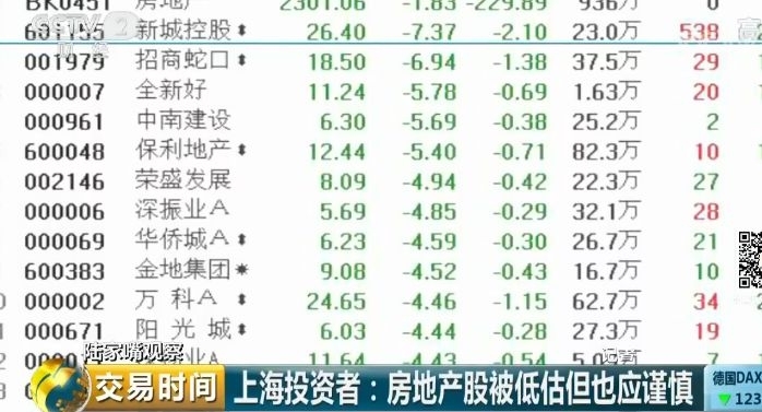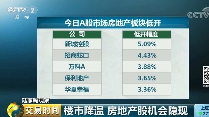 今天,A股房地产板块的表现基本一致,直接低开,新城控股低开5.09%,招商蛇口、万科、保利地产和华夏幸福,低开幅度都超过3%。