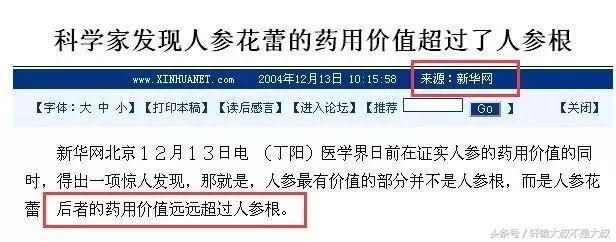 ▲新华网等权威媒体早在2004年就肯定了人参花的药用价值。