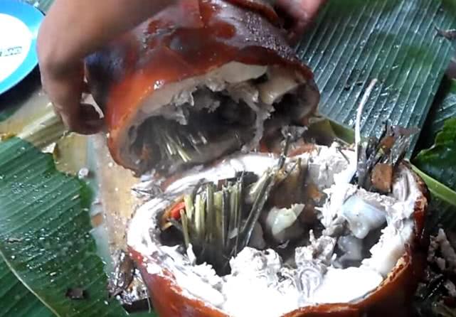 在菲律宾花600买了只烤猪 表面光鲜亮丽 切开后却立马后悔了