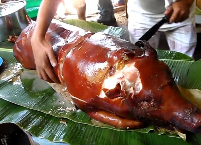就是图片上的这种美食了,大家应该都能认出来吧。没错,这就是烤乳猪。不过很多朋友这时会说了,这烤乳猪国内多的是,怎么就变成菲律宾的特色美食了?其实这种烤乳猪和国内的烤乳猪可大不一样。这种烤乳猪无论是做法,还是用到的调料,都是我没有见过的。