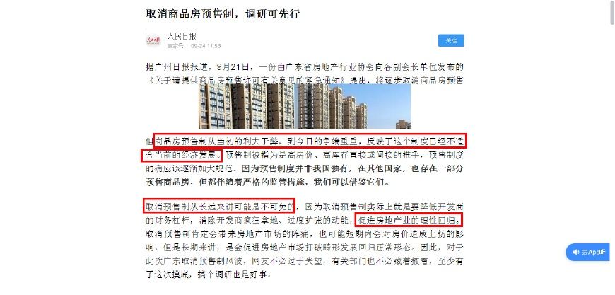 [分享]人民日报发声:取消商品房预售制,是不可避免的