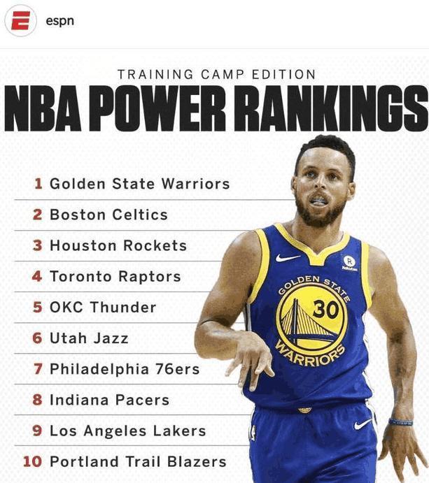 2018-2019赛季半个月后将正式开打,各球队经过一个休赛期的交易补强都对新赛季充满信心和期待,但不是每个球队的实力都能在新赛季有所收获,近日美国权威体育媒体ESPN就根据休赛期运作和上赛季成绩排出了现在的联盟前十队伍!