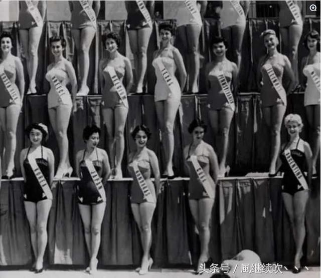 历史老照片:1954年美国选美大赛上,一名佳丽被晒的晕倒了。