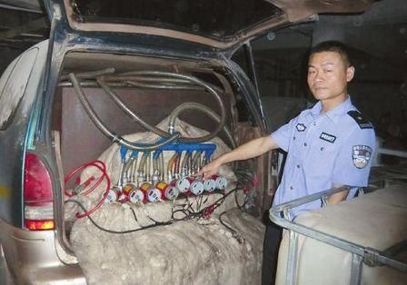 后备箱有一个很大的铁皮向,基本上把后面的座椅都掏空了把,要知道面包车是不能够载货的,警察就上前查看,这不看不知道,一看吓一跳,里面装的都是柴油!