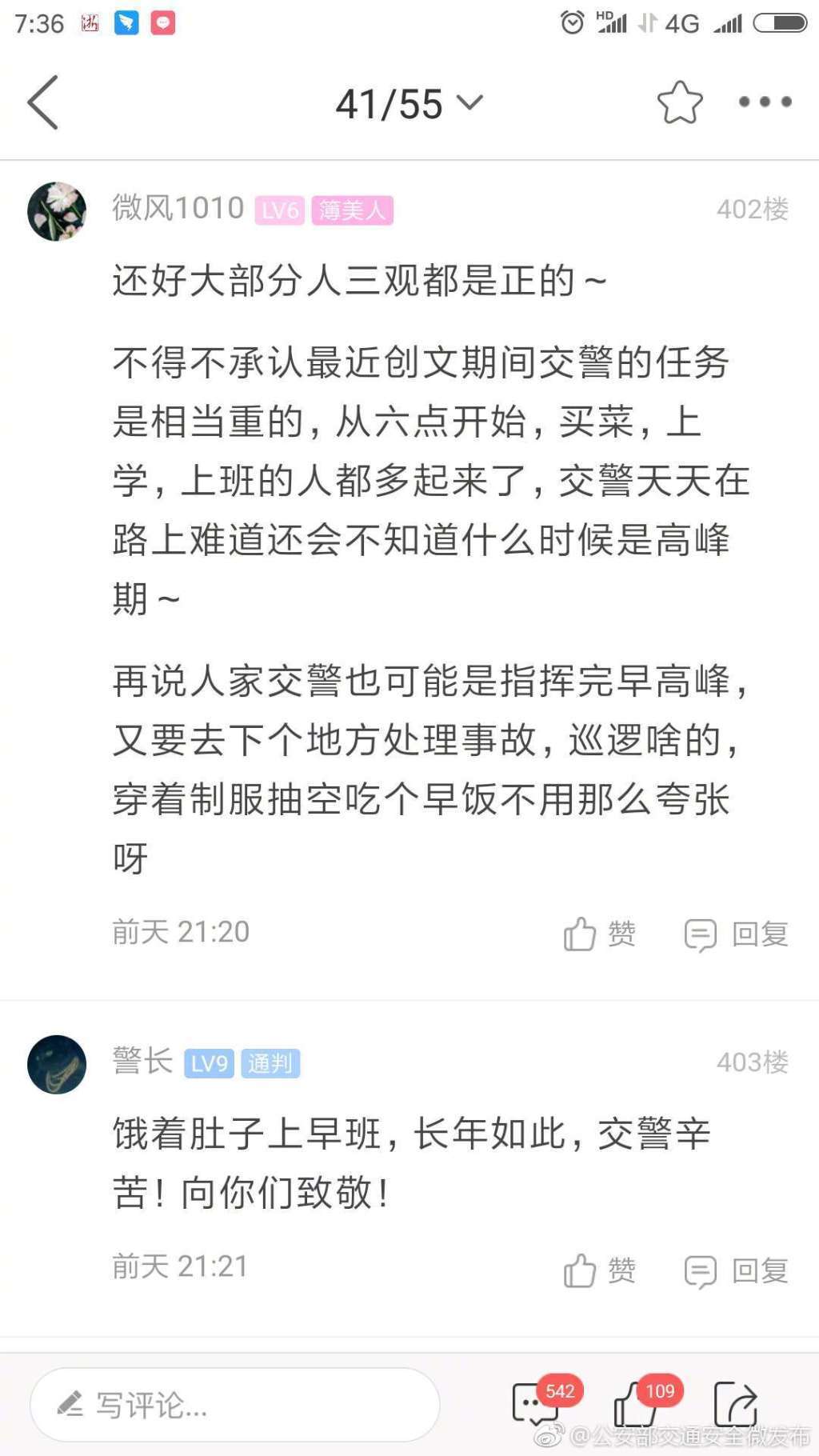 也有众多网友向交警表达感谢,“烈日、大风、大雨...任何恶劣的天气,他们都会出现在各大路口指挥交通,我们可以在家,而他们不行,职责所在。我只想说他们辛苦了。 ”“饿着肚子上早班,常年如此,交警辛苦,向你们致敬!”