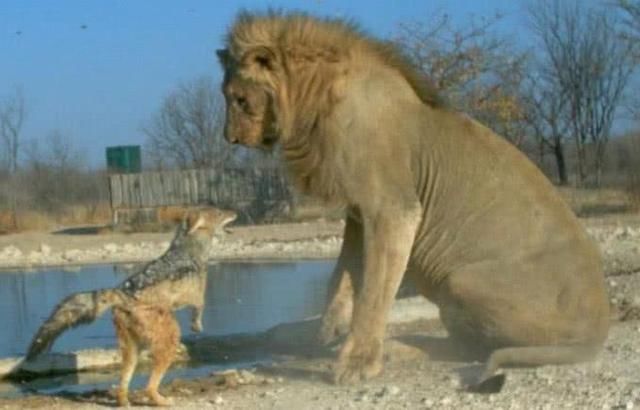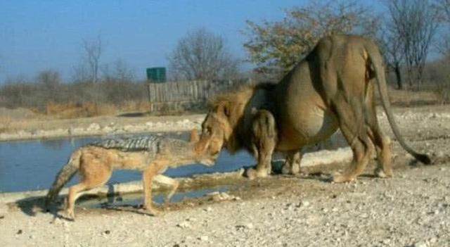 老虎堪称万兽之王,而狮子则被称作草原霸主,一般来说这些动物都是群居的,而且群体里面会有一只领头的,但一般老了会被群体给驱逐,基本上要面临的就是生存的难题了,甚至连些小动物都能欺负它们,比如这只雄狮,在河边喝水,却引来了一头豺。