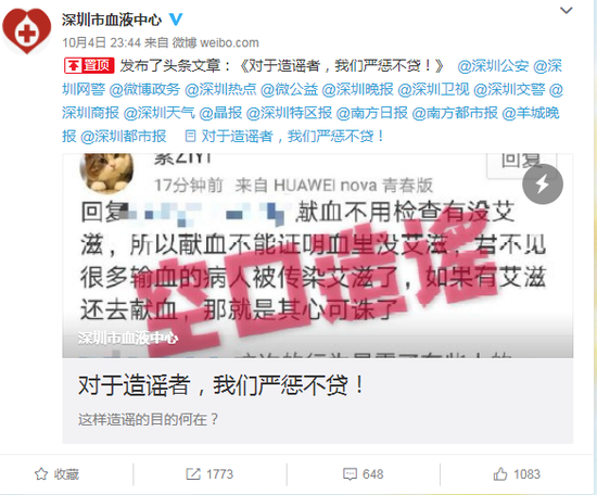[分享]网友称深圳献血前不做检测且输血得艾滋 官方辟谣
