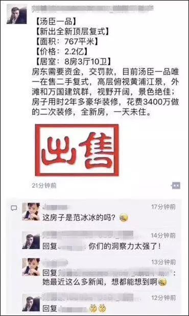 [分享]范冰冰急售2.2亿豪宅凑钱?这家房企站出来了!