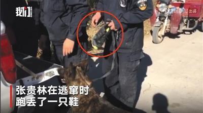 警察和警犬在后面追赶时,张贵林跑丢了一只鞋。