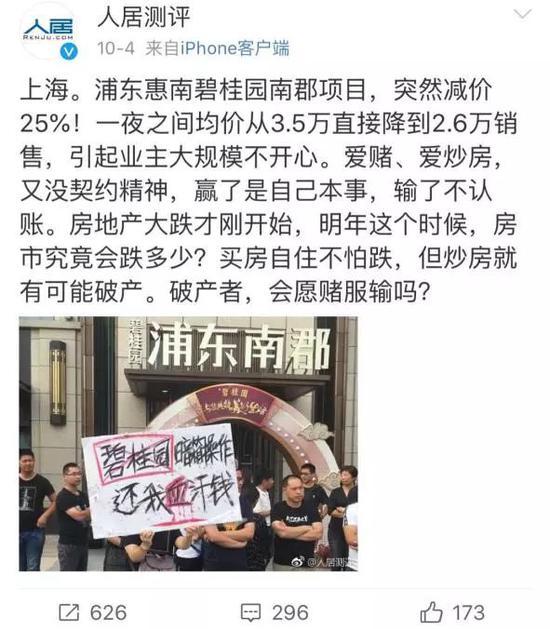 社交媒体上传出多地疑似因楼盘降价而引发的纠纷事件。