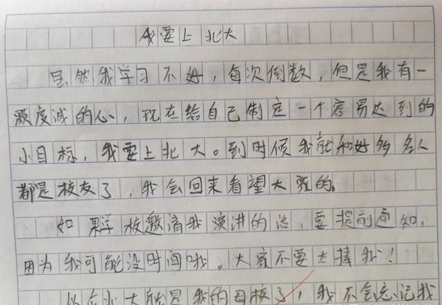 [分享]小学生作文《我要上北大》,老师笑哭,家长:知道北大门朝哪开吗