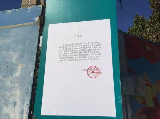 10月1日,是康宁·南洋风情小区的开发商——河南康宁置业有限公司在年初约定的交房最后期限。在小区建设工地的门口,河南商报记者看到盖有该开发商红章的通知,上面写的交房日期是9月底。