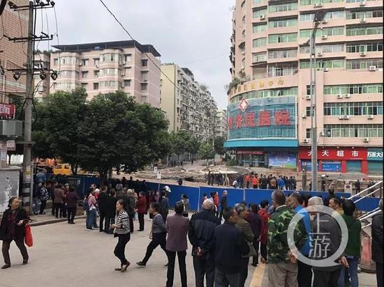 10月10日,达州地陷救援结束后的次日,在事发现场仍有大量群众围观。