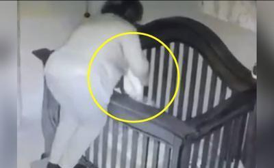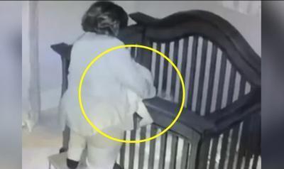 奶奶半夜想把孙子放婴儿床,不料监控拍到意外画面,爸妈都看愣了(