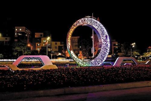 灯光小品——高山月成是河心路上一道亮丽的风景。