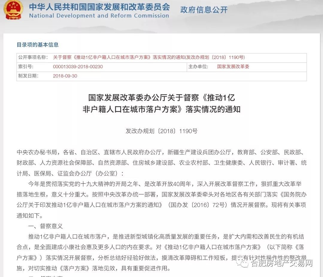 就在昨日,国家发展改革委网站发布了关于督察《推动1亿非户籍人口在城市落户方案》落实情况的通知。