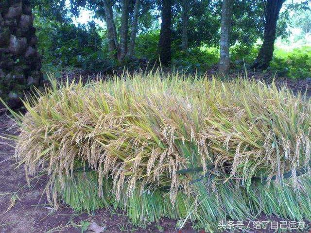 图为收割上来,堆在一边的水稻,这一批实验田最后得出的数据是产量高,效益好。要知道,此前当地品种生育期长20天,产量低,产量最好也只有300斤亩产。