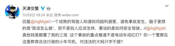 面对网友的质疑,天津交警没有选择回避,而是继续回怼网友:一个成熟的驾驶人知道如何趋利避害,避免事故发生,脑子里想的是“我该怎么做”,而不是别人应该怎样,要说的是如何安全驾驶。