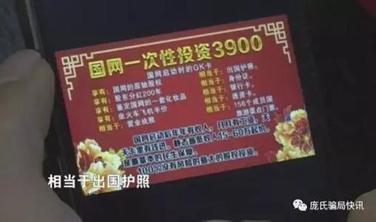 那么,"GK卡"到底能享受什么权益?"中国人际网"推广文章称,一次性投资3900元,可分得一张GK卡,持此卡,可享受中国人际网的原始股权,可分红200年,还可分得一套化妆品。另外,GK卡还相当于身份证、银行卡、营业执照、出国护照、港澳台通行证、原始股权证、营销代理证、联合国156个成员国旅游景点门票等各类证件和凭证。