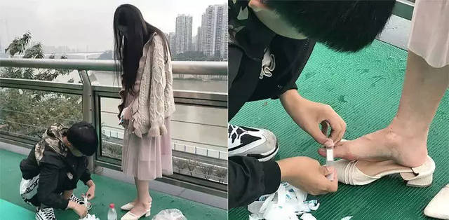 9月28号这一天,重庆游玩的这对情侣被爆屏了,细雨蒙蒙,充满了凉意的微风里这对情侣却温暖了很多人的内心,男孩蹲在地上温柔仔细地为女孩包脚指头,女孩则低头静静地看着。