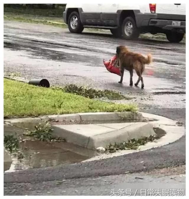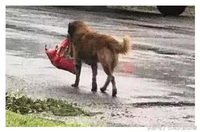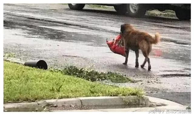 等台风走后,网友出来以后才发现狗狗不见了,拴着它的项圈儿也都散落在地,网友也找了很久,但是依然没有找到自家的狗狗,想着狗狗应该是遇害了,但是过了几天以后,狗狗竟然自己回来了,嘴里还叼着一兜子的吃的,这让网友是又惊又喜,其中最让网友惊喜的是狗狗竟然还自己带着“干粮”,这简直要成精了。