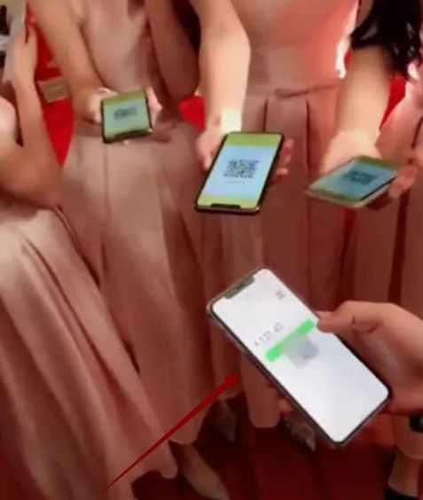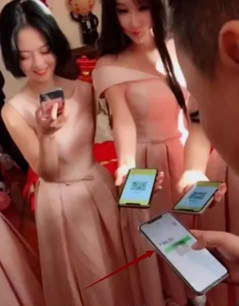 手机,然后仔细看就能看出来,这都是付款的界面,其实这些小仙女们在当伴娘,可是现在当伴娘和原来当伴娘不一样了,原来要是娶妻得塞不少的红包,可是这里的伴娘要钱,没有要红包,而是要微信红包了。