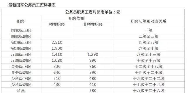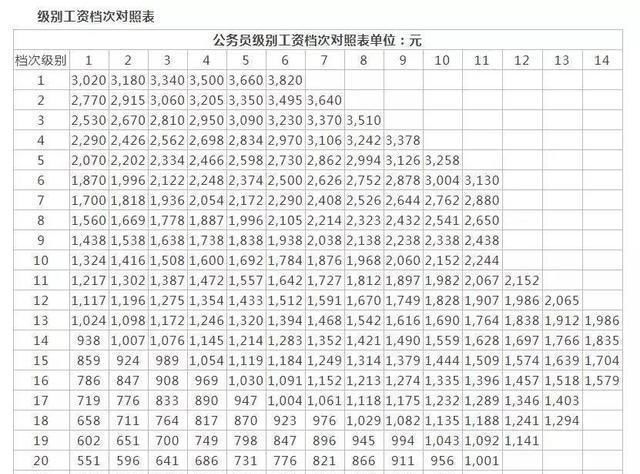 公务员级别工资标准由现行的每月810元至6135元分别提高到每月1020元至6496元。