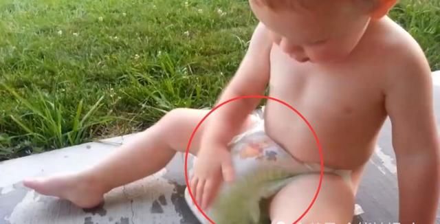 导语:小宝宝开心玩水,不料尿不湿肿成这么大包,接下来的画面让人笑喷
