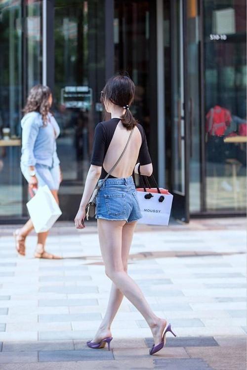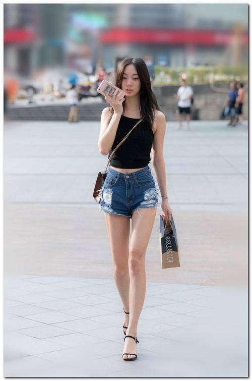 美女穿热裤出街,腰细腿长,看完简直美反了。