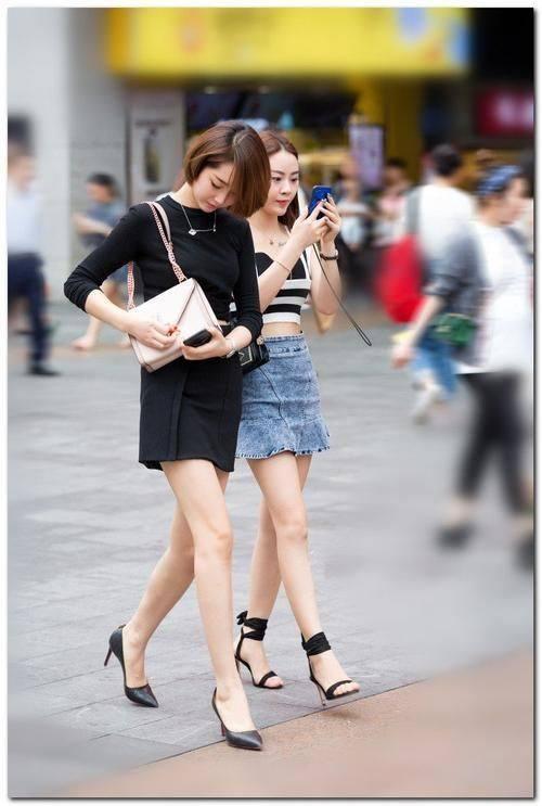 时尚的姐妹花,性感的穿搭,尽显大长腿。