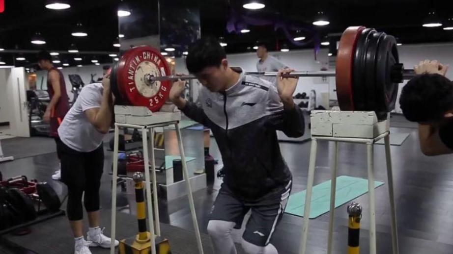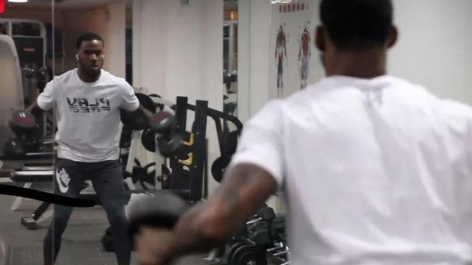 在探营当天,我们在新疆队训练基地看见了刚刚归队不久的小外援亚当斯,他本被安排在家休息,却和大家一起出现在了训练基地,单独进行着力量训练。