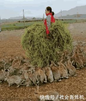 [分享]主人割草回来被兔子围攻,抱草站中间不能动弹,场面很是壮观
