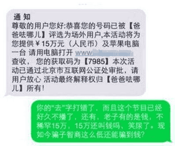 [分享]骗子给女大学生发诈骗短信, 收到一条回复, 骗子: 你是不是很皮