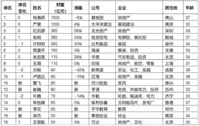80后财富继承富豪榜 郑州“企二代”李花上榜!王思聪仅排第16名