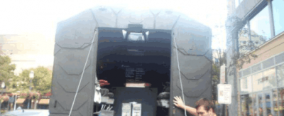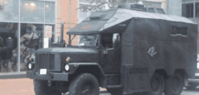 国外的一小伙开这一辆撞甲车由于在路边乱停,所以被交警拦下了,这辆装甲车是小伙亲手改装的,外观非常的霸气,强悍的钢板车身,交警要求车主打开尾门看看里面,小伙打开车门后,交警都吓到不敢动了。