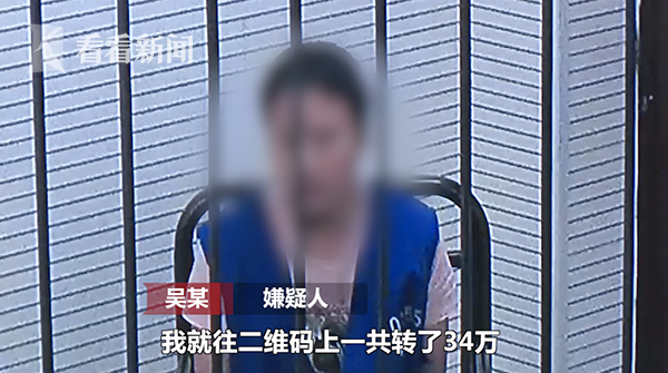 嫌疑人吴某:“我叫她打开手机,手机密码也让她告诉我,我就往二维码上一共转了34万。”
