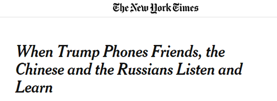 对于不明真相的吃瓜群众,主页君再把事情简单介绍一下:前几天,《纽约时报》刊登文章,说中国和俄罗斯在窃听特朗普的手机。