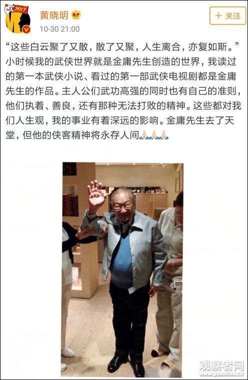 [分享]金庸逝世,“韦小宝”“小龙女”“乔峰”…发文悼念