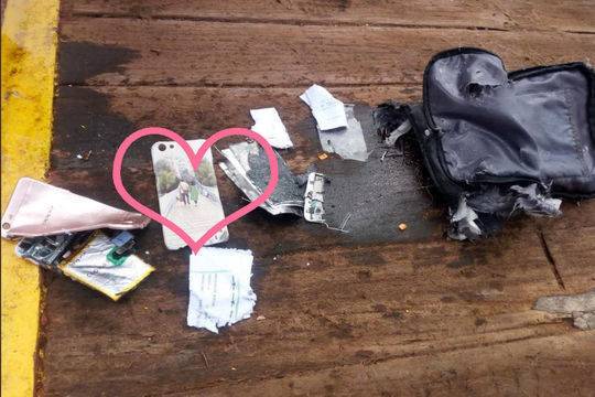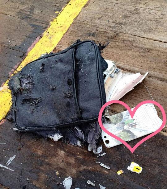 印尼救灾机构在网上发布了一些遗物照片,照片中有被搜索和救援小组收集的被压碎的智能手机、书籍、衣物、身份证、救生衣和袋子。