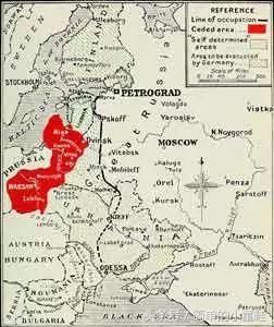 说明:这个苛刻的和约,不仅使苏俄丧失了将近一百万平方公里的土地和近五千万居民,而且在被占领区有占全国煤炭开采量的90%,铁矿石的73%,54%的工业以及33%的铁路。