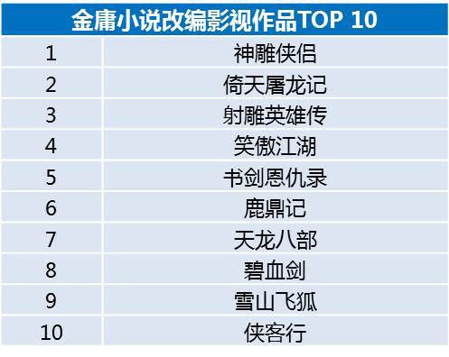 最受影视公司热捧,改编拍摄次数最多的的作品则是神雕侠侣。从1960年到2014年,共拍摄了6部相关题材电影、8部同名电视剧,堪称翻拍史上时间跨度最长的IP。