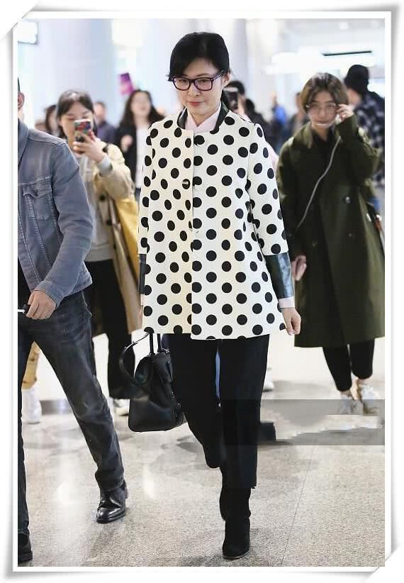 白色大黑圆点的上衣外套,袖口独特的黑皮设计,自然,却十分的有亮点,简单的穿着,也难以掩盖她独特的气质。